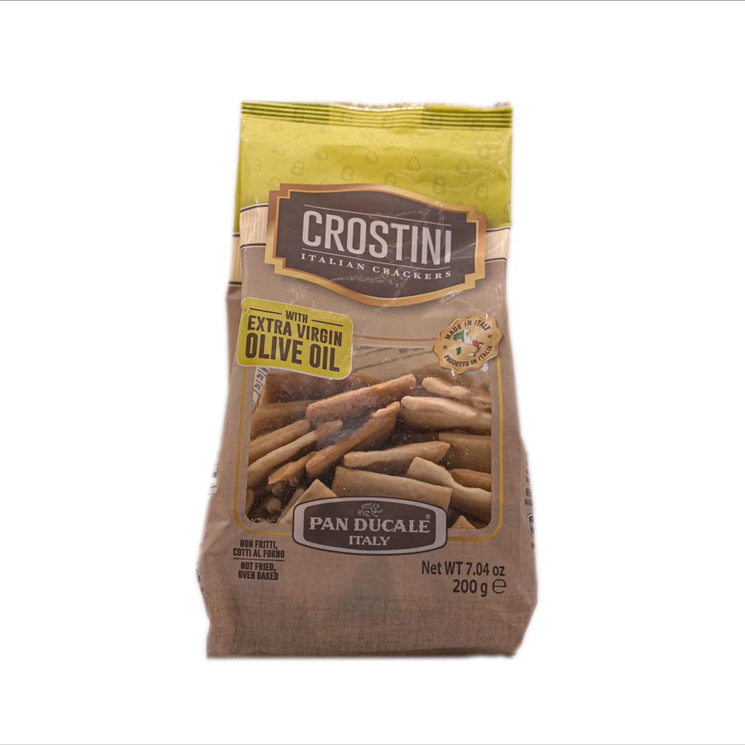 Krakersy Crostini z oliwą z oliwek Pan Ducale 250 g to delikatne, chrupiące krakersy wypiekane z dodatkiem oliwy, o subtelnym śródziemnomorskim aromacie.