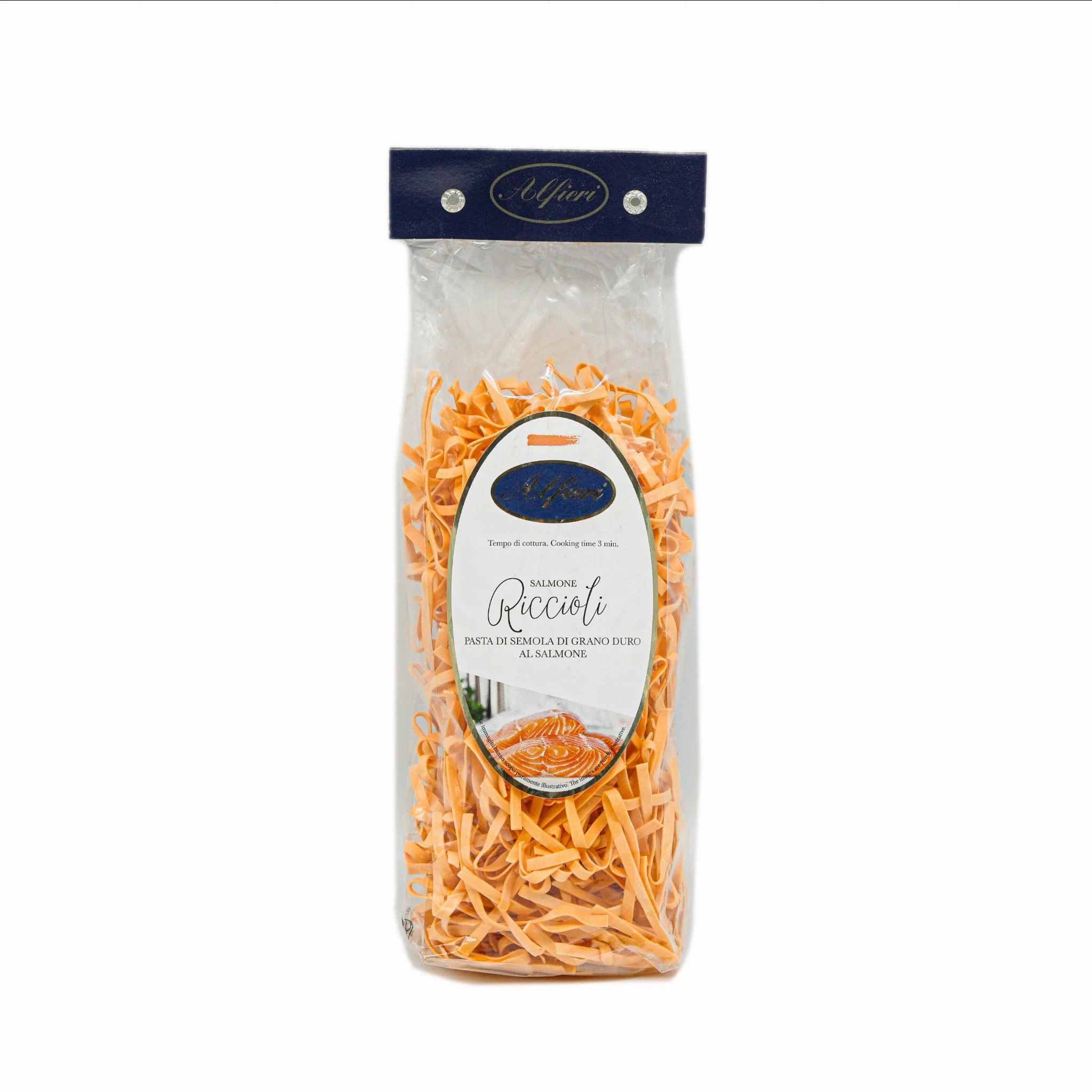 Riccioli z łososiem 250 g to makaron stworzony z myślą o miłośnikach wyrafinowanych, morskich akcentów w daniach kuchni włoskiej. Jego skręcona forma sprawia, że każdy kęs pełen jest smaku łososia i ulubionych dodatków — czy to w sosie śmietanowym, czy oliwnym. Dzięki gotowemu połączeniu składników przygotowanie pysznego posiłku jest wyjątkowo proste i szybkie.