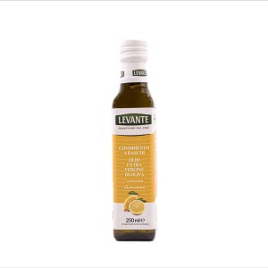 Oliwa smakowa cytrynowa Levante 250 ml to delikatna oliwa extra vergine wzbogacona świeżym aromatem cytryny. Idealna do ryb, sałatek, warzyw i lekkich dań śródziemnomorskich.