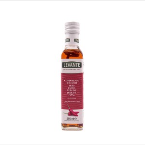 Oliwa smakowa pikantna papryka Levante 250 ml to aromatyczna oliwa extra vergine wzbogacona ostrą nutą papryki. Doskonała do pizzy, makaronów, grillowanych warzyw i dań śródziemnomorskich.