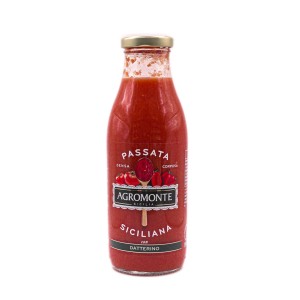 Passata pomidorowa Datterino Siciliana Agromonte 520 g to esencja sycylijskiej tradycji kulinarnej, w której prostota spotyka się z najwyższą jakością. Powstaje z pomidorków datterino, znanych z wyjątkowej słodyczy, delikatności i intensywnego aromatu. Dojrzałe w sycylijskim słońcu, są przetwarzane tuż po zbiorach, aby zachować świeżość, naturalny kolor oraz pełnię smaku.