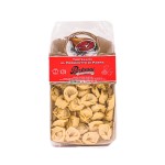 Świeży makaron Bertagni nadziewany szynką parmeńską 250 g to połączenie wyrazistego smaku prawdziwej włoskiej szynki parmeńskiej z delikatnym, cienkim ciastem makaronowym. Każdy pierożek jest pełen aromatu, a po ugotowaniu staje się miękki, sprężysty i wyjątkowo smaczny. To szybki i wygodny sposób, by w kilka minut przygotować danie rodem z włoskiej trattorii — wystarczy odrobina oliwy, masło szałwiowe lub lekki sos śmietanowy, aby podkreślić szlachetny charakter nadzienia.
